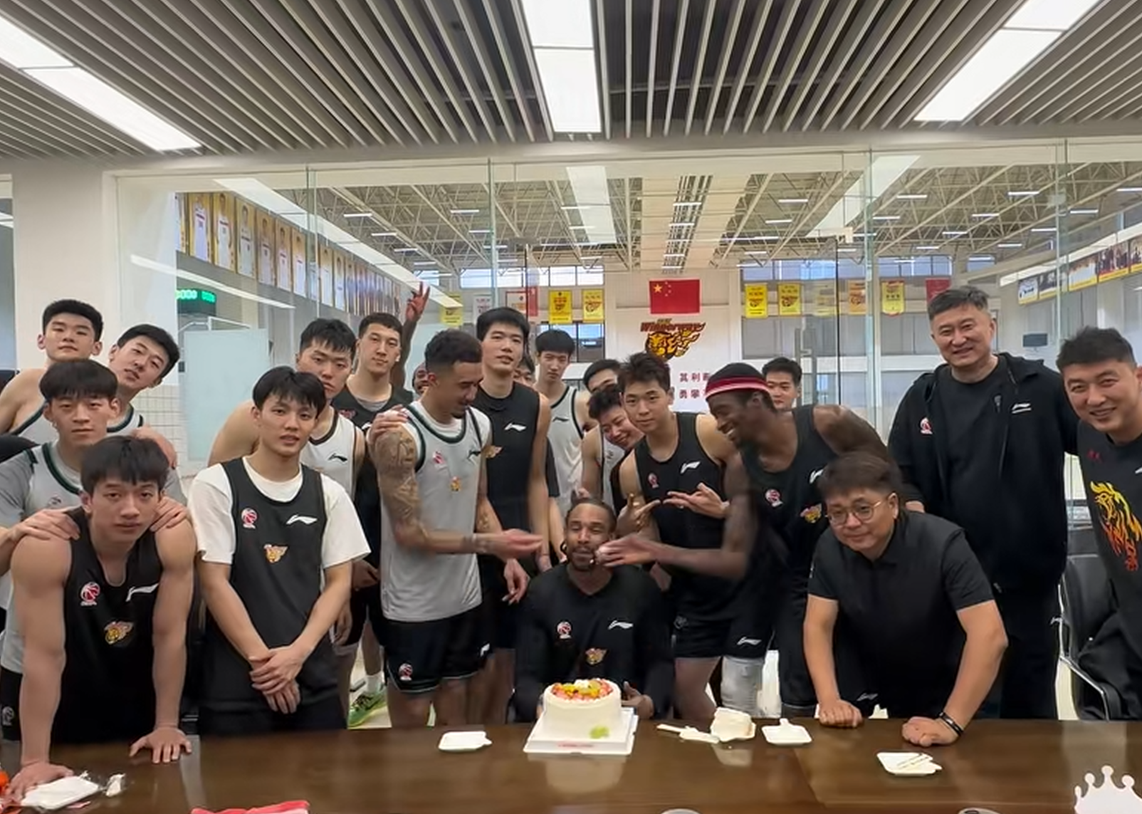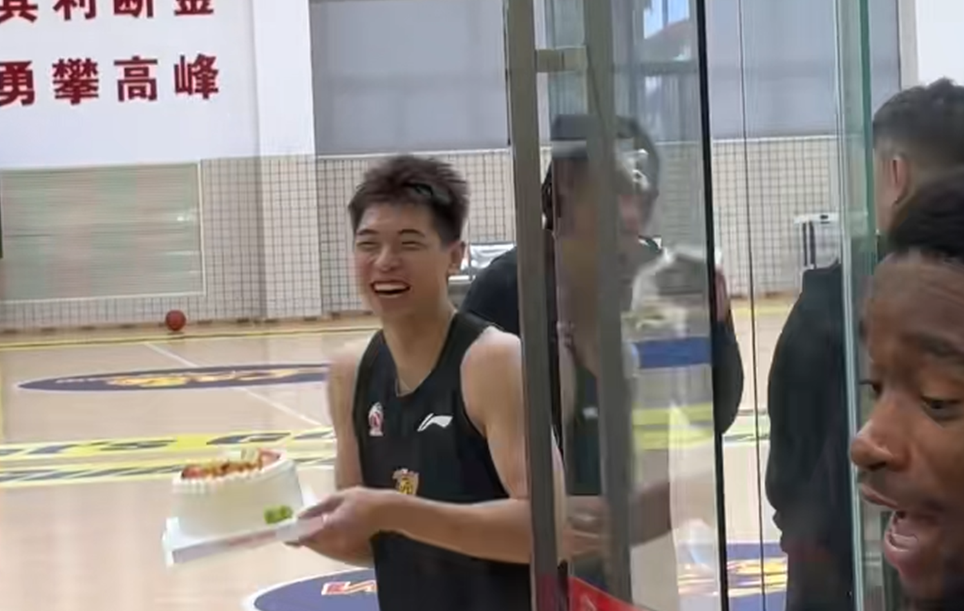 广东为萨林杰庆生!崔永熙故意调侃,杜锋送上一脚,胡明轩缺席!